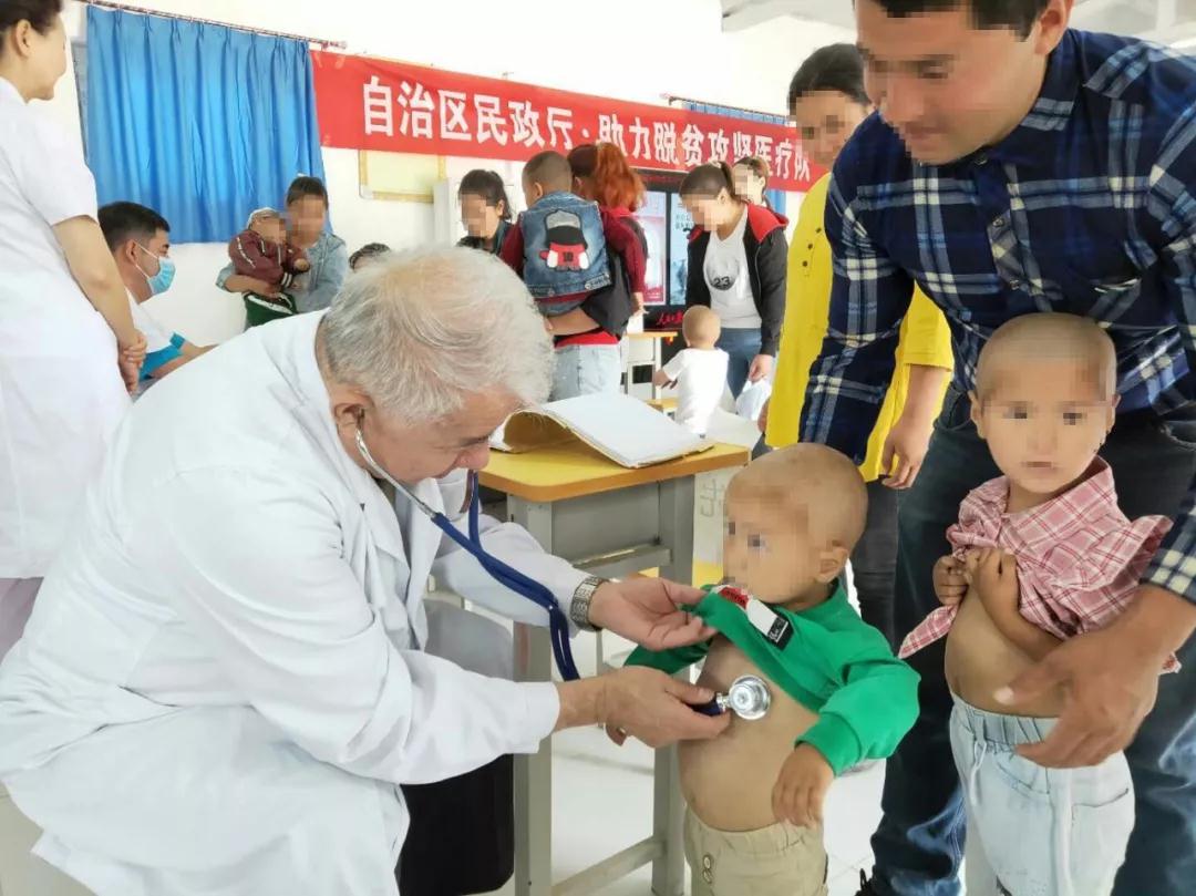 巡回医疗队由脑瘫科木塔力甫副主任、心胸外科木沙由夫主任医师、普外科阿合提别克主任医师、耳鼻喉科司峰志主治医生,眼科阿克莱医师、超声诊断科景江新副主任医师等六名医疗队员组成。巡回医疗期间,医疗队队员们行程5000多公里,深入深度贫困村开展救助筛查、疾病诊疗、健康宣传等工作,为1000余名困难群众提供义诊服务。针对贫困儿童就医问题,医疗队拟对500名有手术适应症的困境病残儿童申请“明天计划”项目救助,分批分期实施治疗。