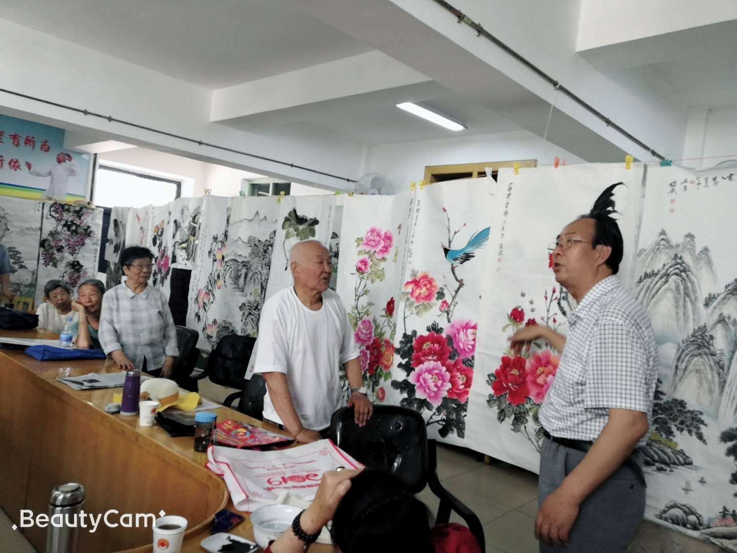 在中国共产党建党98周年之际,自治区老干部书画学会张虎仁会长和学会书法老师与beat365离退休职工书画小组约30多位学员进行了座谈,详细了解了书画小组的学习活动和工作情况,并集中点评了各位书画学员的书画作品。