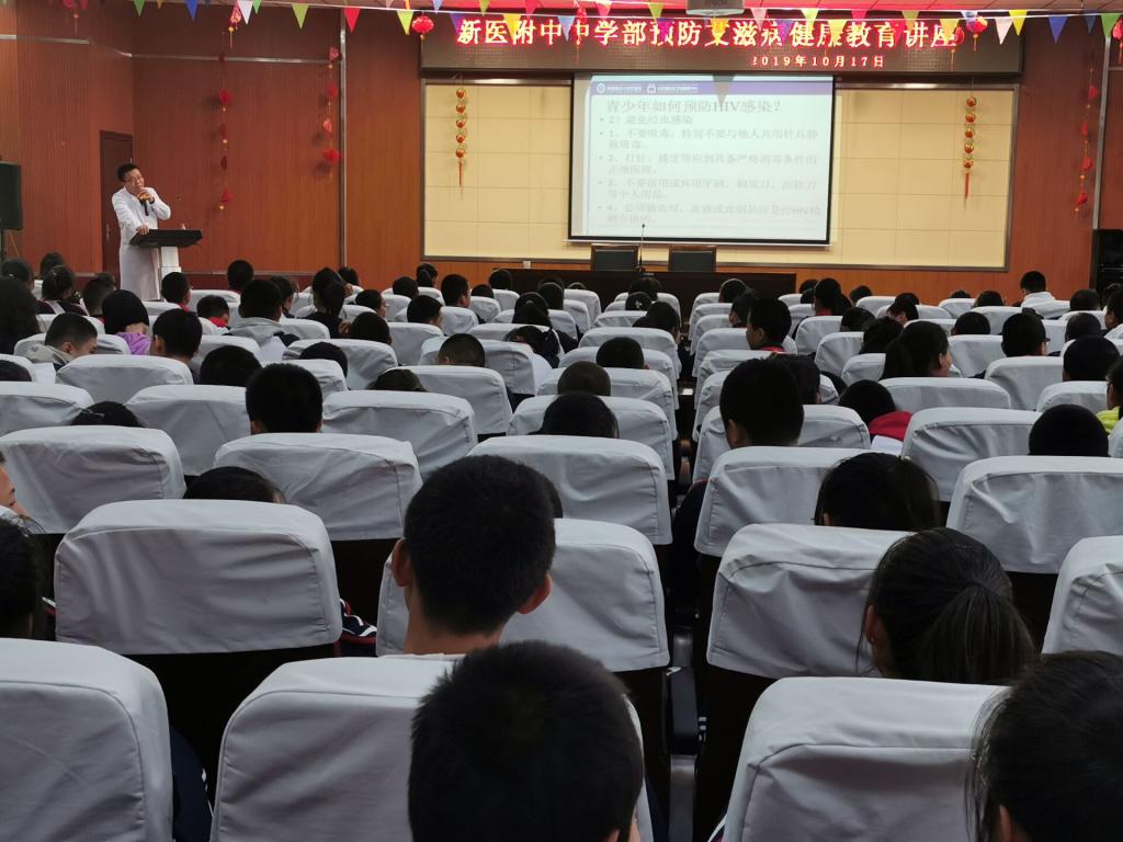 10月17日,beat365在线唯一官网附属中学举办了“关爱生命,拒绝艾滋”的健康教育讲座,邀请校医院的潘景仁老师为中学部全体师生们做了一场关于艾滋病防治的健康知识专题讲座。