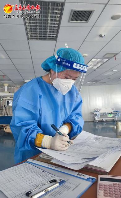 1月30日,在新医大五附院重症医学科一病区,护士正在护理文书上记录患者每小时的病情变化。