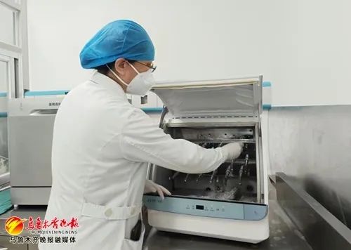 当日记者在口腔诊疗中心看到,护士会用转运箱,将操作使用过的牙科手机及小器械转运至消毒室,用专用机器进行严格消毒,做到“一人一用一消”。