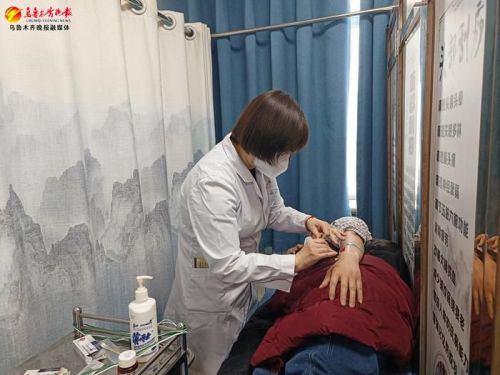 张女士因糖尿病住进了新医大二附院老年科,最近常感到胸闷。会诊后,征得家属同意,每日科室治疗结束后,老人在中医科治疗区内接受针灸、推拿治疗。几天的治疗下来,症状明显缓解。