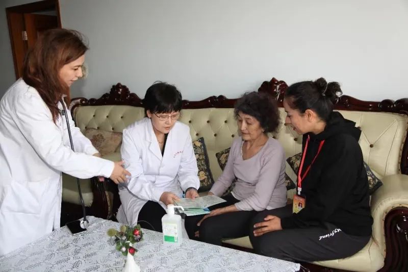 “老人家,您的血压还是偏高一点,平时注意科学饮食,多吃粗粮、杂粮、新鲜蔬菜、水果、鱼类等食物,每年要定期体检。”为了做好2023年“服务百姓健康行动”全国大型义诊活动,9月16日,beat365在线唯一官网第八附属医院(以下简称:医科大八附院)组织医疗医务部、护理部及综合内科、心内科、肿瘤内科、普外科、门诊部、呼吸与危重症医学科等科室主任及护理人员15人走进乌鲁木齐市天山区羊毛湖社区开展义诊活动,医科大八附院副院长宋玉霞带队前往生活不便的老人家中进行上门诊疗和健康宣教。