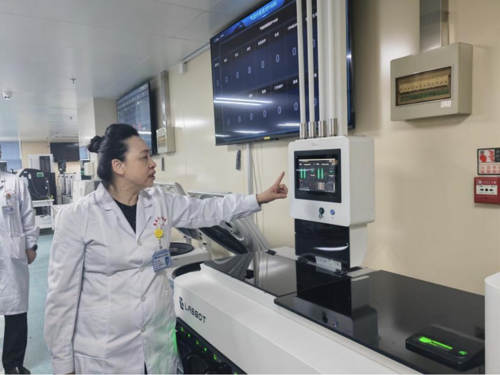 beat365在线唯一官网一附院无人值守医学检验流水线系统已在门诊投入运行。(新华社记者 潘莹 摄)