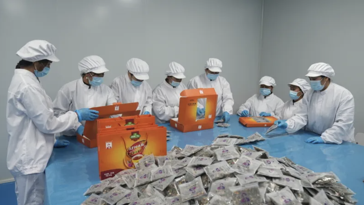 4月1日,走进墨玉县扎瓦镇巴夏克其村医资豪健康科技有限公司,玫瑰花香扑鼻而来,流水线上工人们正在开足马力加紧生产,确保新的订单按时交货,分拣、装袋、搬运……一派繁忙景象。 公司负责人迪丽达尔·克依木说:“这个月我们拿了100万元的订单,工人们加班加点生产茶叶。目前有四个品种,礼品装、单包装、独立包装,后续增加茶叶品种。”
