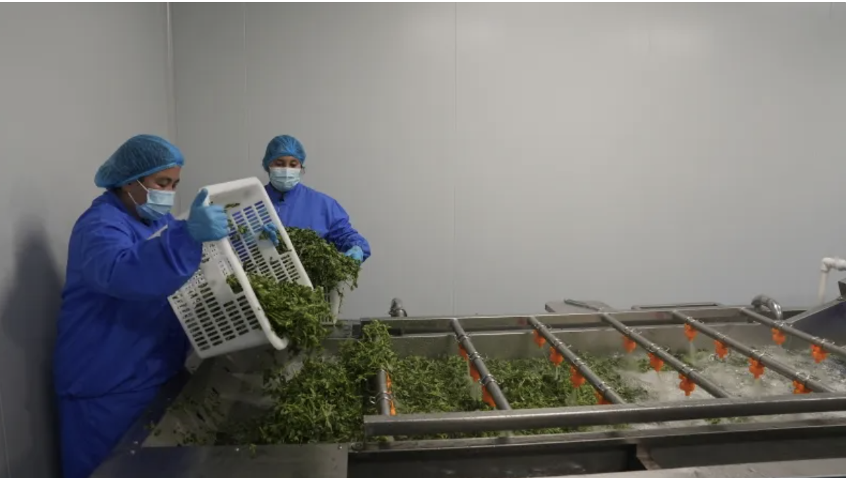 员工们在清洗原料