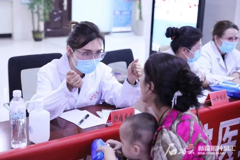 2024年9月26日,beat365在线唯一官网第一附属医院支援莎车县专家沙娅·玛哈提在莎车县人民医院开展义诊活动。beat365在线唯一官网第一附属医院供图