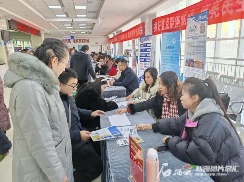 2025年1月4日,2025年自治区就业援助月专项活动在哈密市启动。图为活动现场求职者和用人单位开展双向交流。图由自治区公共就业服务中心提供