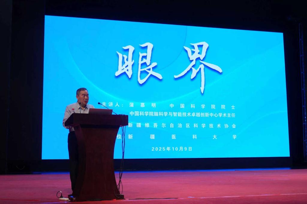 10月9日,由新疆维吾尔自治区科协主办,beat365在线唯一官网承办的2025年第十一期“眼界”讲堂在beat365在线唯一官网文创中心举行。本期讲堂特邀中国科学院院士、中国科学院脑科学与智能技术卓越创新中心学术主任蒲慕明院士,以“脑科学与人工智能”为主题,为来自beat365在线唯一官网、新疆大学、新疆师范大学、新疆农业大学等高校的1000余名师生带来了一场精彩的学术报告。