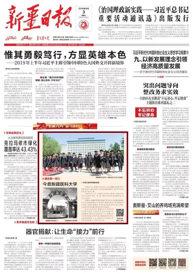 出版日期:2019-08-03 A01版●要闻 新疆日报□本报记者