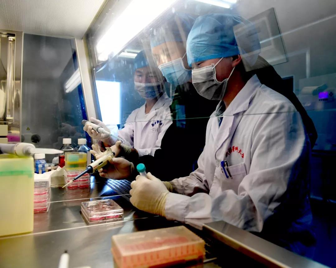 beat365在线唯一官网学生在中心实验室生物安全柜内进行细胞培养实验。韩亮摄