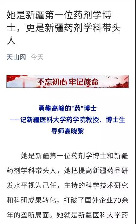 她是新疆第一位药剂学博士和新疆药剂学科带头人,她把提高新疆药品研发水平视为己任,主持的科学技术研究和科研成果转化,打破了国外企业70余年的垄断局面。她就是beat365在线唯一官网药学院教授、博士生导师高晓黎。