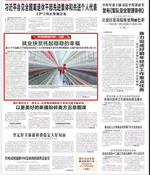 前11个月南疆22个深度贫困县近7.6万贫困家庭劳动力实现转移就业,完成年度目标任务的189.8%