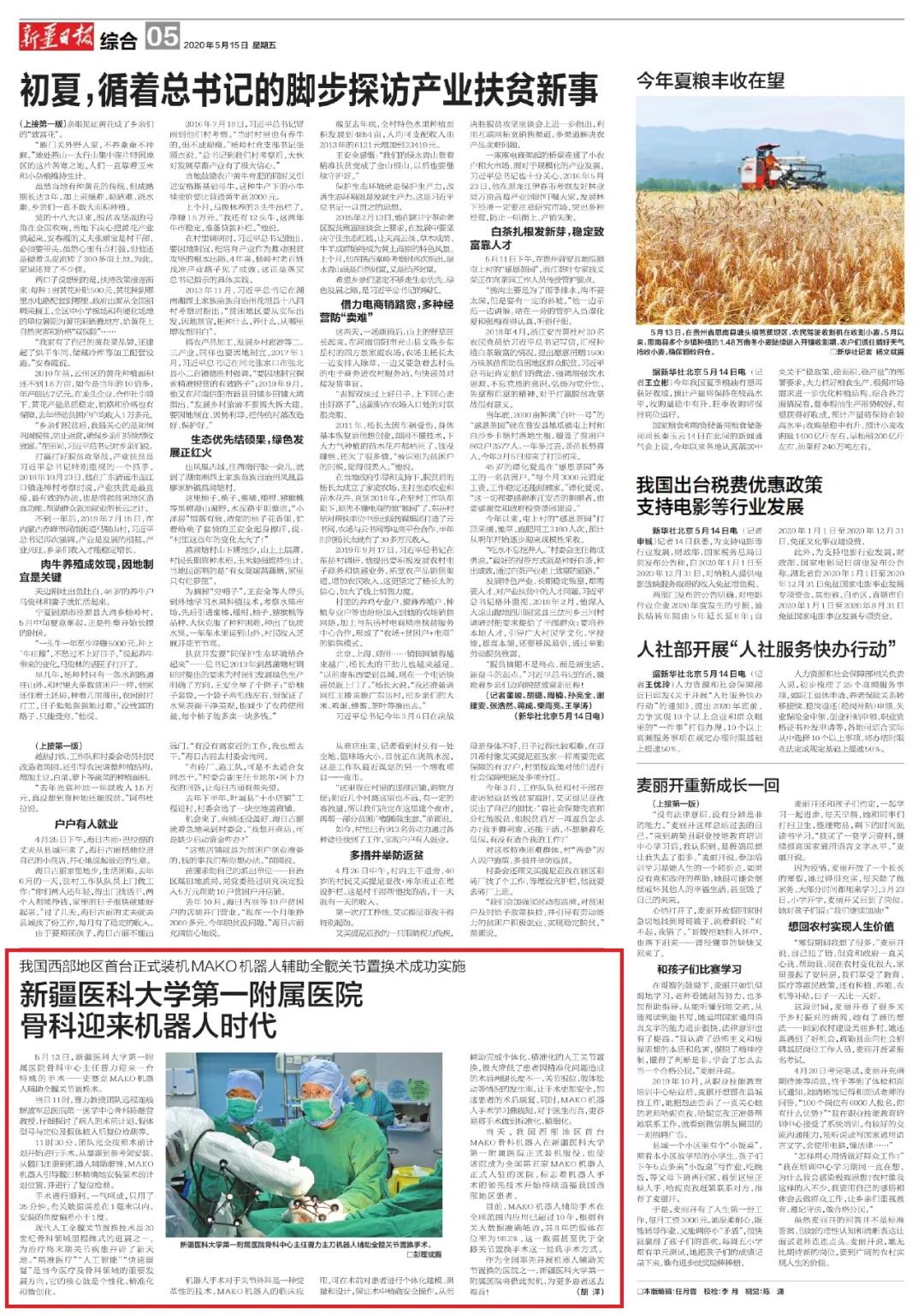 新疆日报:beat365在线唯一官网第一附属医院骨科迎来机器人时代