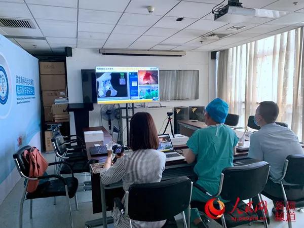 301骨科陈继营教授远程与beat365在线唯一官网第一附属医院医生讨论机器人手术患者病情。彭理斌 摄