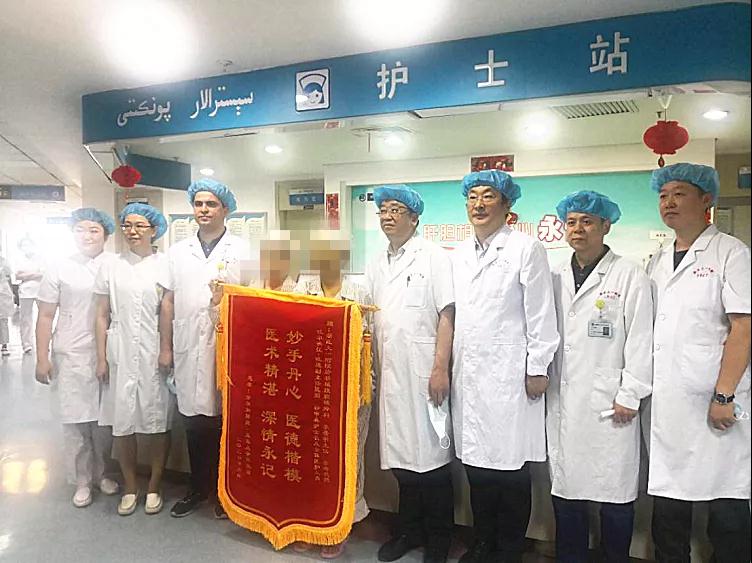 11日上午,姐妹俩把一面代表谢意的锦旗交到肝脏 · 腹腔镜外科团队手中,下周她们就可以一同出院回家,慢慢回到正常生活轨道。据了解,微创活体供肝的肝脏移植技术是目前外科学界最具挑战性的制高点。自2014年天津市第一中心医院顺利开展我国首例全腹腔镜下活体肝移植供肝切取手术以来,腹腔镜右半肝供肝切取在全国仅华西医院等三家单位有13例报道。新医大一附院就此次腹腔镜右半肝供肝切取的活体肝移植手术,向中国科学院新疆科技查新咨询中心进行委托查新,据6月8日出具的《科技查新报告》显示该手术为西北首例。(图由beat365在线唯一官网第一附属医院提供)