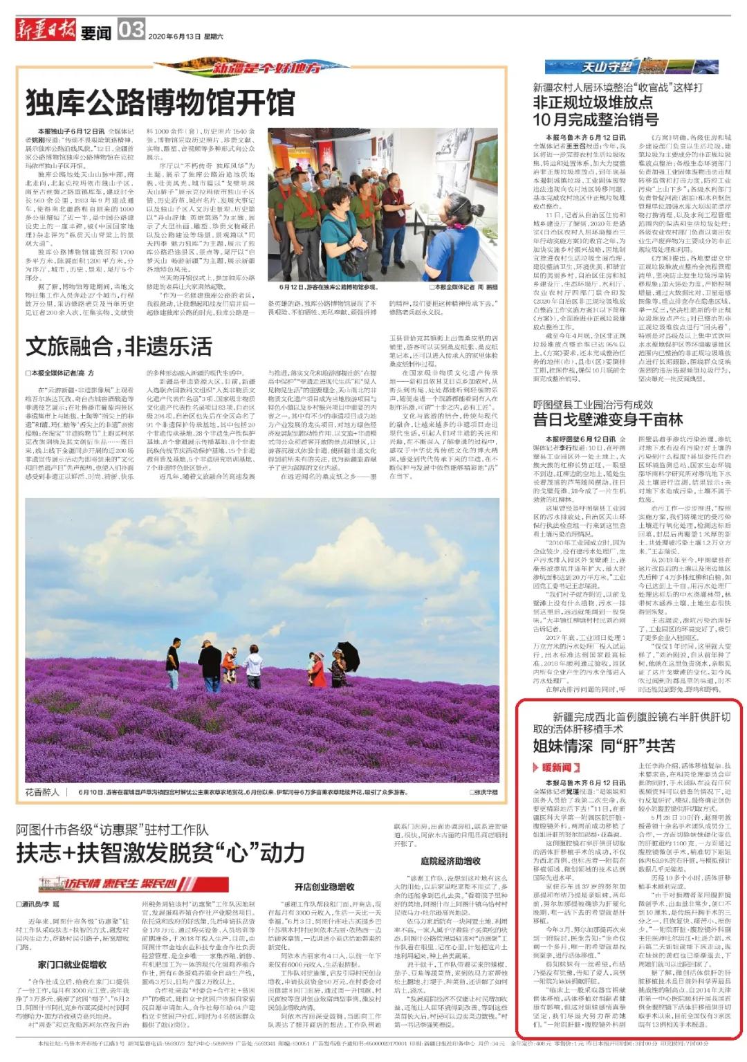 6月11日,beat365在线唯一官网第一附属医院成功完成了西北首例腹腔镜右半肝供肝切取的活体肝移植手术,受到了疆内多家媒体的关注报道。