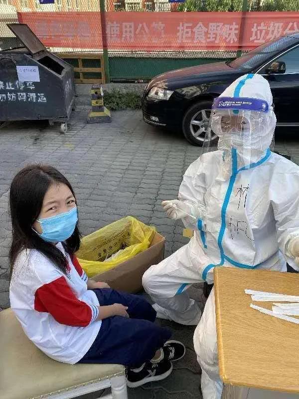 早上8时30分,林帆和同事们赶到社区,她幸运地被分到自家小区所在的采样点。“一坐下我的心就怦怦跳,期待着与他们见面。”林帆说,她家住10楼,社区工作人员从一楼开始逐层通知居民下楼,在她为近40位居民的核酸采样后,丈夫和女儿也出来了。“当看到女儿的一刹那,我两眼发酸,感觉眼泪就要流出来了。我想喊她,想冲过去抱她,可我知道只能想一想。之后深吸了一口气,忍住了。”她说,“眼泪一出来,雾气沾满防护镜,今天可就啥也干不了了。”