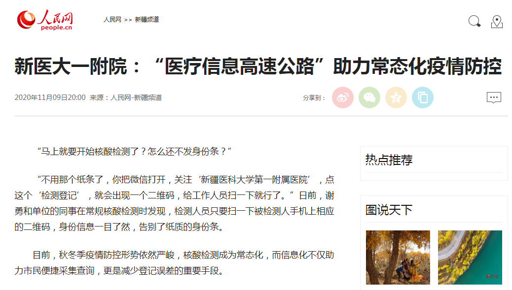 据了解,自8月上线以来,新医大一附院借助系统完成了社区、学校、企业、事业单位等多次核酸采样任务,圆满完成核酸检测登记、采集、查询工作,采集人数近10万人,提升了核酸采集效率及采样精准度,方便了百姓。