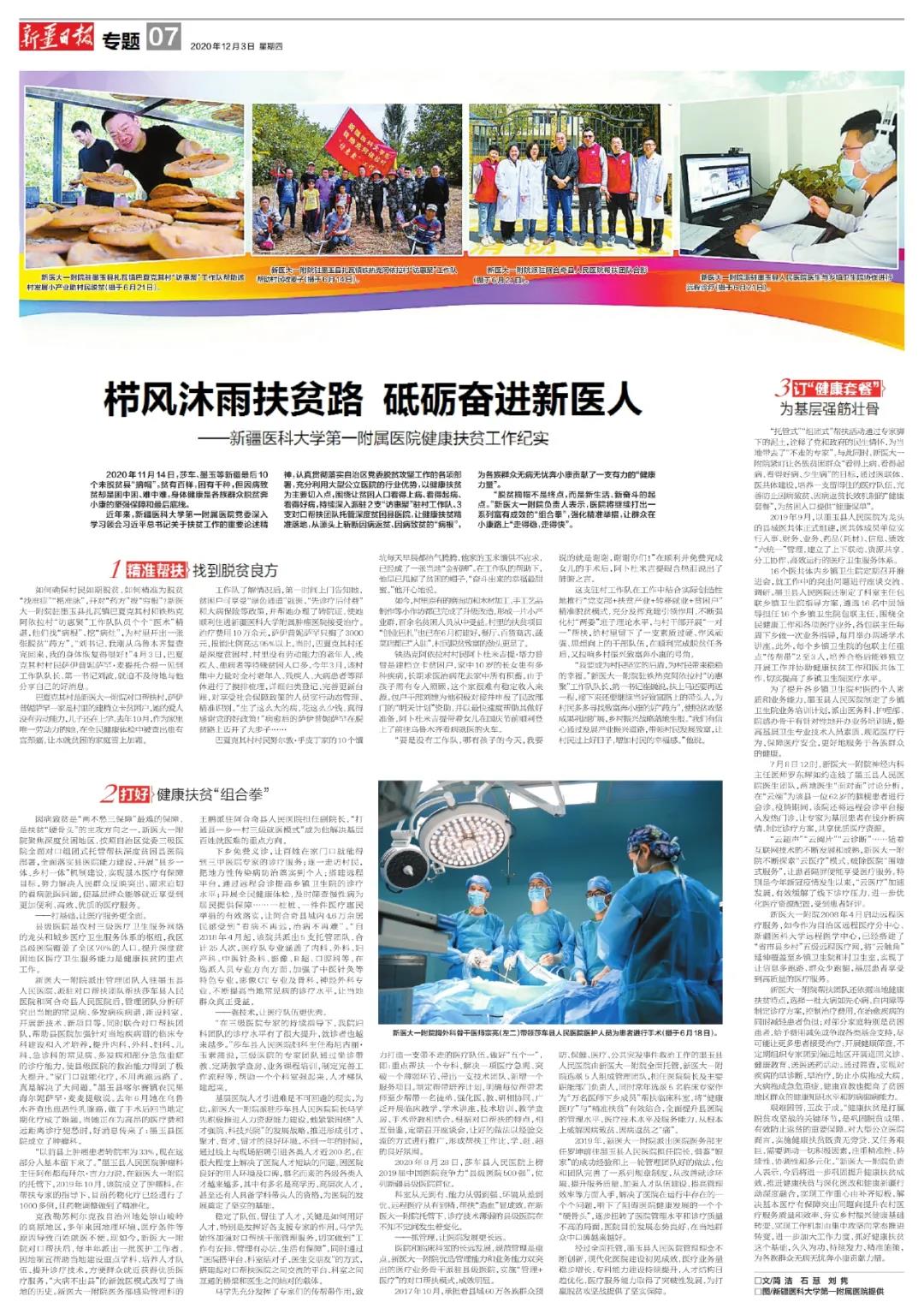 “托管式”“组团式”帮扶活动通过专家脚下的泥土,诠释了党和政府的民生情怀,为当地带去了“不走的专家”。与此同时,新医大一附院紧盯让各族贫困群众“看得上病、看得起病、看得好病、少生病”的目标,通过医联体、医共体建设,培养一支留得住的医疗队伍,完善防止因病致贫、因病返贫长效机制的“健康套餐”,为贫困人口提供“健康保单”。