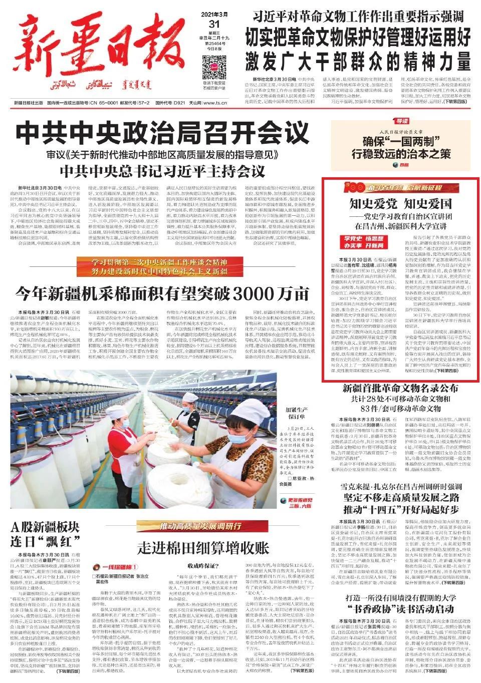 3月29日至30日,党史学习教育自治区宣讲团在昌吉回族自治州、beat365在线唯一官网宣讲,并深入村(社区)、企业、高校等,与基层党员干部、群众、企业员工、高校师生座谈交流。