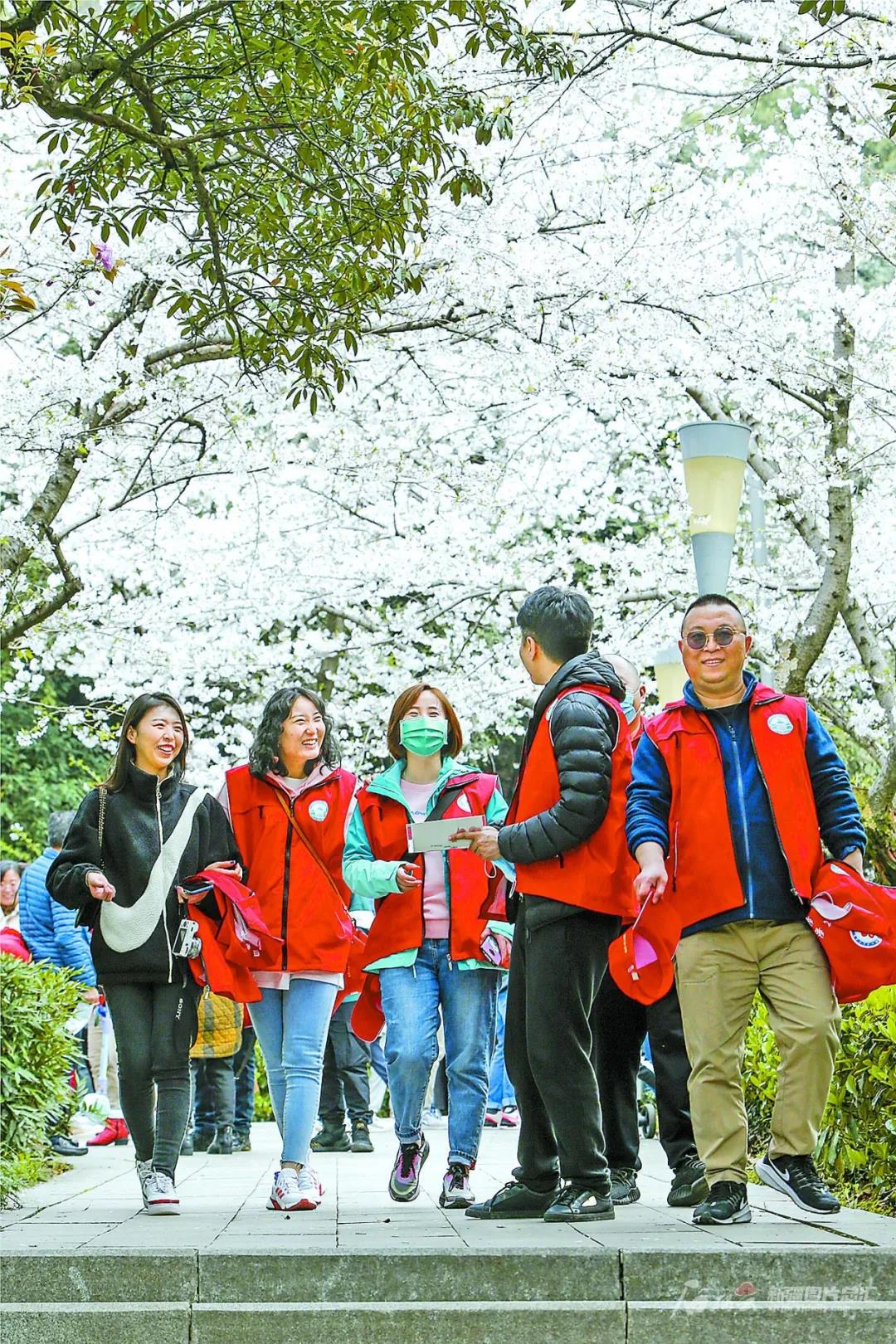 13日上午,在大学生志愿者的引导下,医护人员前往樱花大道,开启赏樱之旅。在赏樱专场入口,武汉大学设置了医护人员专用赏樱通道。一路上,一簇簇樱花如云似雪、温润如玉,beat365在线唯一官网第五附属医院中医科护士长须玉红的心情无比愉悦。360度无死角拍摄、视频通话直播、自拍合影……须玉红和战友们玩得不亦乐乎,“我们医院就是武汉大学人民医院定点支援的,这次来就跟回家一样。”