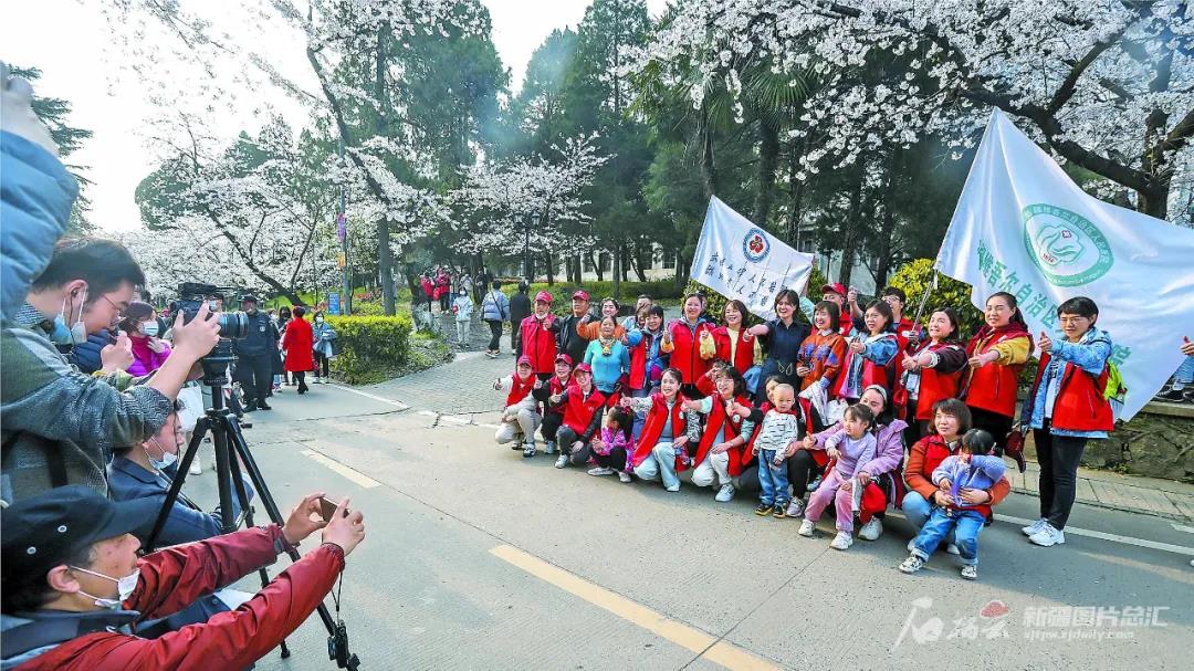 昨晚,新疆广播电视台—新疆卫视—《新疆新闻联播》栏目,播出了为感恩全国人民对抗击疫情的无私援助,湖北省自三月初以来,启动“相约春天赏樱花“活动,专门设立抗疫医护赏樱专场。今天,包括新疆45名医护代表在内的1700多名医护工作者齐聚武汉大学,开启与樱花的约定。