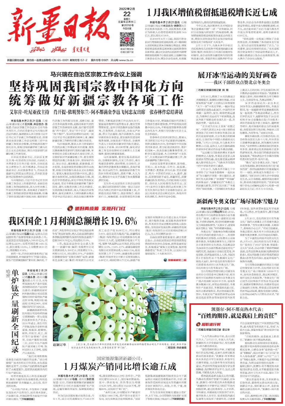 出版日期:2022-02-22 A01版●要闻