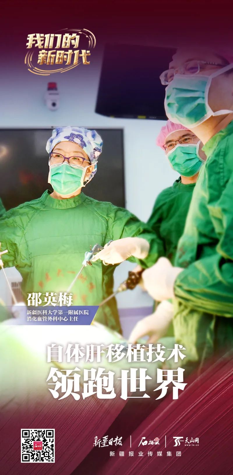 1989年,邵英梅刚进入医院工作时,新疆还没有实施肝移植手术,患者必须去疆外大城市就医。“为填补这项空白,导师温浩教授带着我们通过大动物的肝移植,掌握了肝移植相关技术和操作。并通过和其它国内知名医院肝移植团队,不断精进技术。”在医院的支持下,邵英梅考取华中科技大学同济医院器官移植博士。