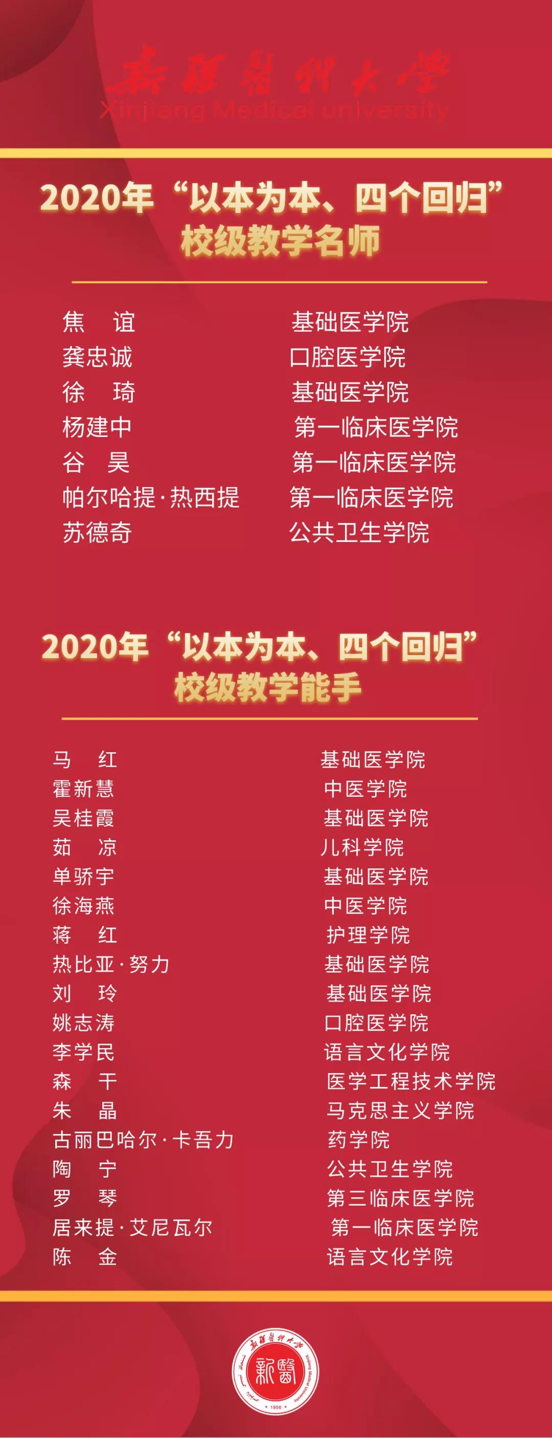 beat365在线唯一官网公布了2020年校级教学名师和教学能手名单