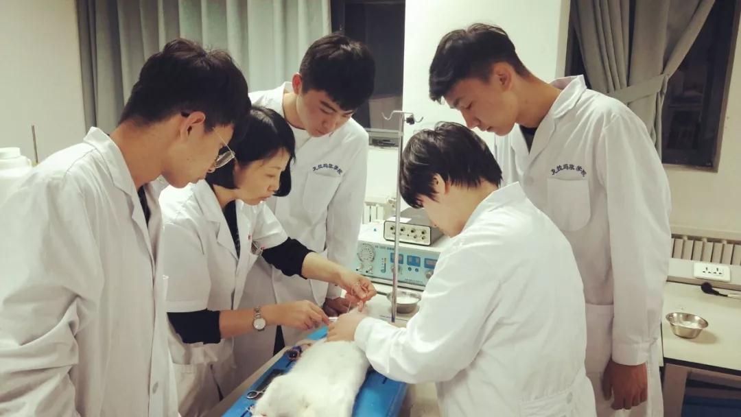 5月16日晚,基础教学楼机能203、219两间实验室内参加开放性实验项目的师生济济一堂。当天开展的实验项目是“家兔手术基本操作”,是2018级相关专业班级的学生从未接触过的。因此,陈勤带领实验指导教师从宣讲实验动物福利、实验安全注意事项、实验操作步骤入手,讲得仔细。同学们满怀对新知识的憧憬,认真听讲,记录操作要点,最后在指导教师的帮助下完成了首例动物手术。