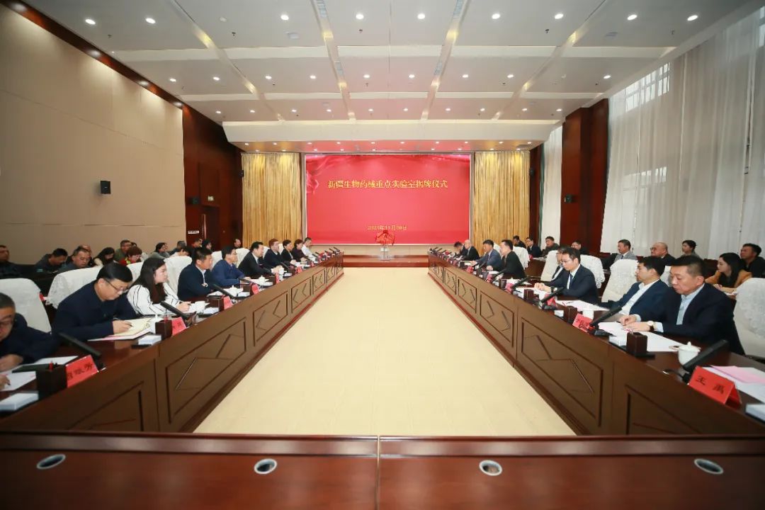11月20日下午,自治区重点实验室——新疆生物药械重点实验室在beat365在线唯一官网雪莲山校区揭牌。中国工程院院士、中国医疗保健国际交流促进会会长韩德民院士,中国医促会副秘书长陈杰,beat365在线唯一官网党委书记赵天杰,校党委副书记、校长阿吉艾克拜尔·艾萨,自治区教育厅党组成员、副厅长刘剑,自治区科技厅二级巡视员余英荣出席揭牌仪式并致辞。校党委常委、副校长杨新玲主持揭牌仪式。