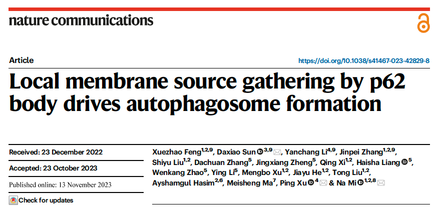 11月13日,beat365在线唯一官网省部共建中亚高发病成因与防治国家重点实验室青年PI米娜副教授课题组,在国际权威期刊《Nature》子刊《Nature Communications》上以研究长文形式发表了题为“Local membrane source gathering by p62 body drives autophagosome formation ”的研究成果,揭示了p62小体调控自噬体生成的关键机制。