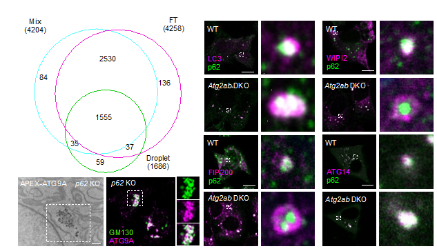 在自噬体的形成过程中,自噬体形成的起始和自噬体膜的来源是自噬过程的核心与底层问题,一直是该领域前沿探索的难点与挑战。该项研究开创性提出自噬的起始,研究发现p62体是自噬相关蛋白聚集和膜源的招募平台,p62体在自噬体形成过程中发挥作用是通过空间聚集的形式,无膜凝聚物和膜泡的相互作用可共同调节细胞的功能,阐明了p62体影响从货物分离到双层膜结构形成的自噬体生物发生的多个步骤,这些重要发现加深了我们对自噬中蛋白凝聚体对膜动力学时空控制的理解,为本领域原创的科研进展在理论上有重大突破,极具临床疾病诊断和治疗的开创性突破和应用前景。
