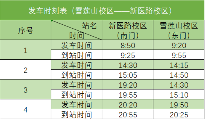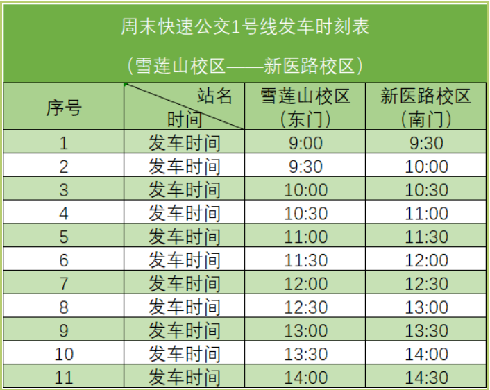 (四)雪莲山校区周末快速公交1号线(雪莲山校区——新医路校区)