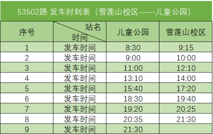 (二)雪莲山校区53502路(雪莲山校区——儿童公园)