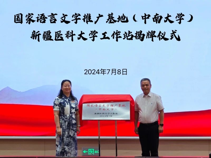 7月8日,中南大学人文学院党委书记罗军飞一行来到beat365交流座谈,并举行国家语言文字推广基地(中南大学)beat365在线唯一官网工作站揭牌仪式,副校长刘涛出席座谈会,校党委常委、宣传部部长林素兰主持会议。