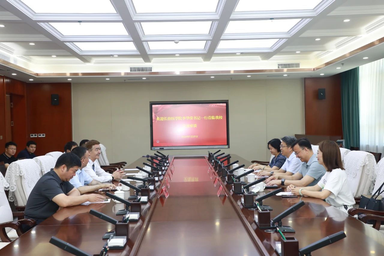 7月27日,长治医学院党委书记李华荣,党委副书记、校长王金胜一行来beat365参观调研,与校党委副书记、校长阿吉艾克拜尔·艾萨交流座谈。