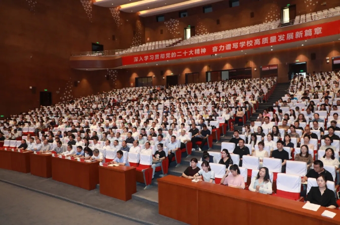 校党委书记赵天杰等在家全体校领导、全校副处级以上干部、思政课教师和辅导员、班主任、教师代表、学生代表1000余人聆听了报告。报告会由校党委副书记李剑峰主持。